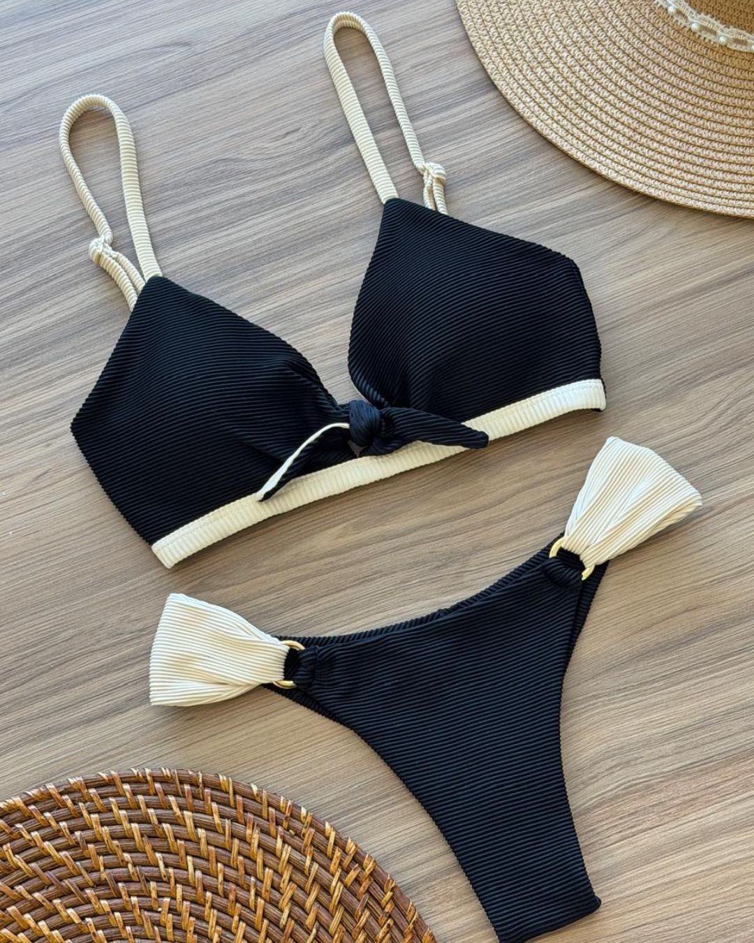 Biquíni Preto Creme Top Fixo Calcinha Borboleta Argolas – Ric Resortwear