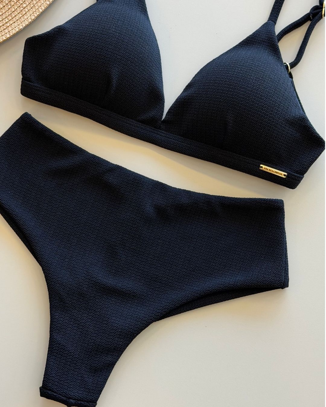 O top possui modelagem estruturada em formato triangular, com base mais larga que garante maior sustentação e conforto ao busto.