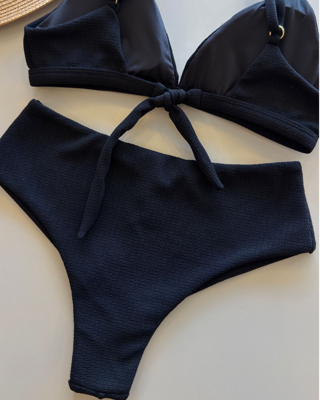 Biquíni Preto Top Fixo Calcinha Hot Pants Fio Duplo
